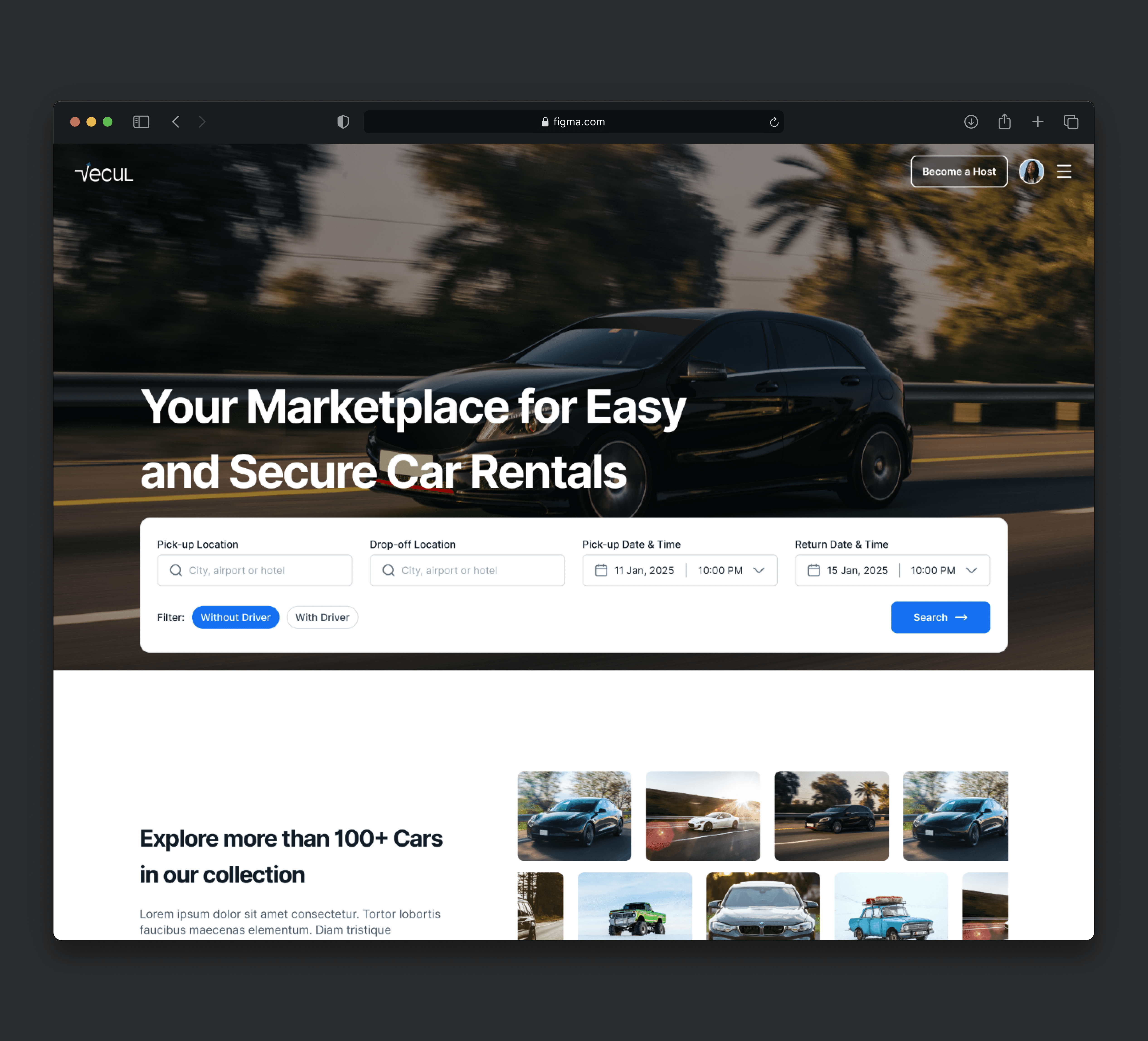 Vecul is a comprehensive car rental marketplace that connects three key stakeholders: individual car owners looking to monetize their idle vehicles, established rental businesses seeking to expand their reach and manage fleets efficiently, and renters seeking affordable, flexible transportation options. The platform serves as a centralized hub that makes car sharing accessible, secure, and profitable across Nigeria's fragmented rental market.