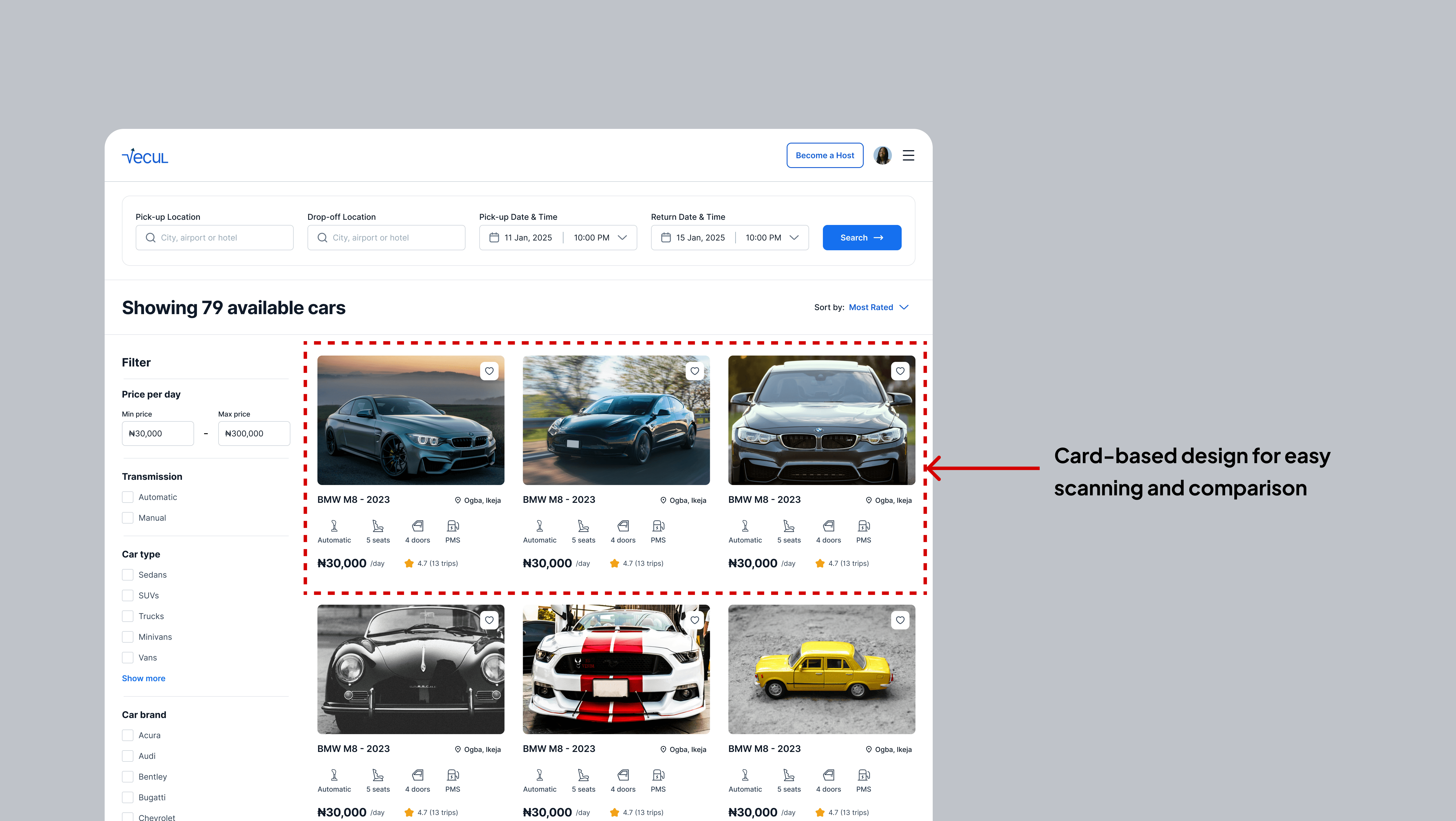 Trust is Critical in Peer-to-Peer Marketplaces: Security features like BVN verification, and clear pricing weren't just nice-to-haves, they were essential for both hosts and renters to feel confident using the platform.